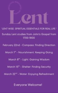 Rev Ian will be leading us in a series of Lent studies, commencing on 22nd February